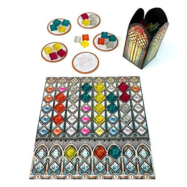 With double-sided panels providing a dynamic player board, the game offers infinite variability, guaranteeing a unique experience every time. The game also features beautiful translucent window pane pieces, discarded glass pane storage tower, and double-sided player boards to enhance gameplay aesthetics.